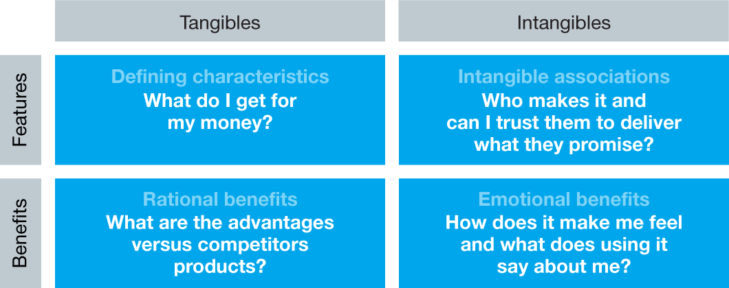 Brand definition is the process of articulating value-creating attributes in terms of tangible and intangibles and brand features and benefits. We use a workshop tool called the brand cube which is populated by providing the answers to four questions customers invariably ask about the things they purchase.